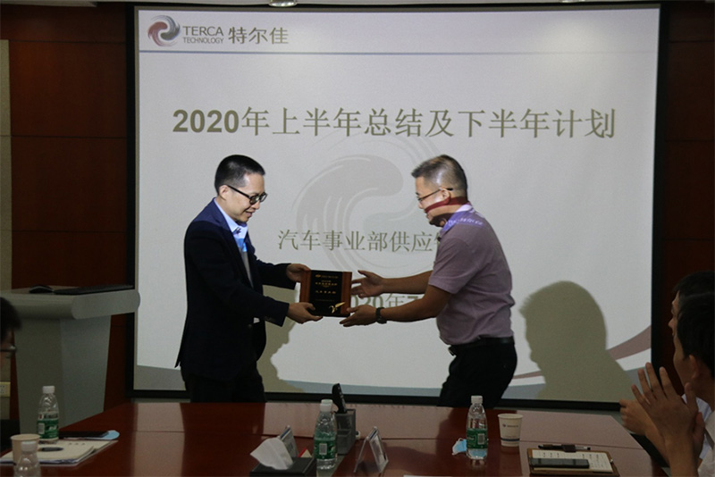 总经理蒋晖向汽车事业部颁发上半年先进事业部奖
